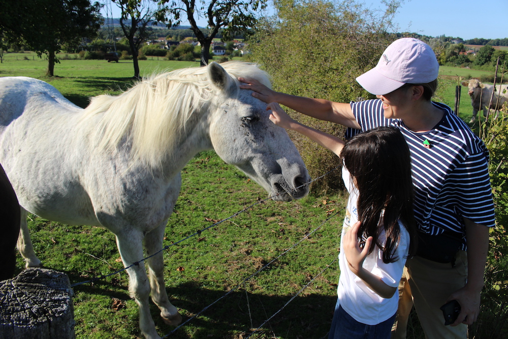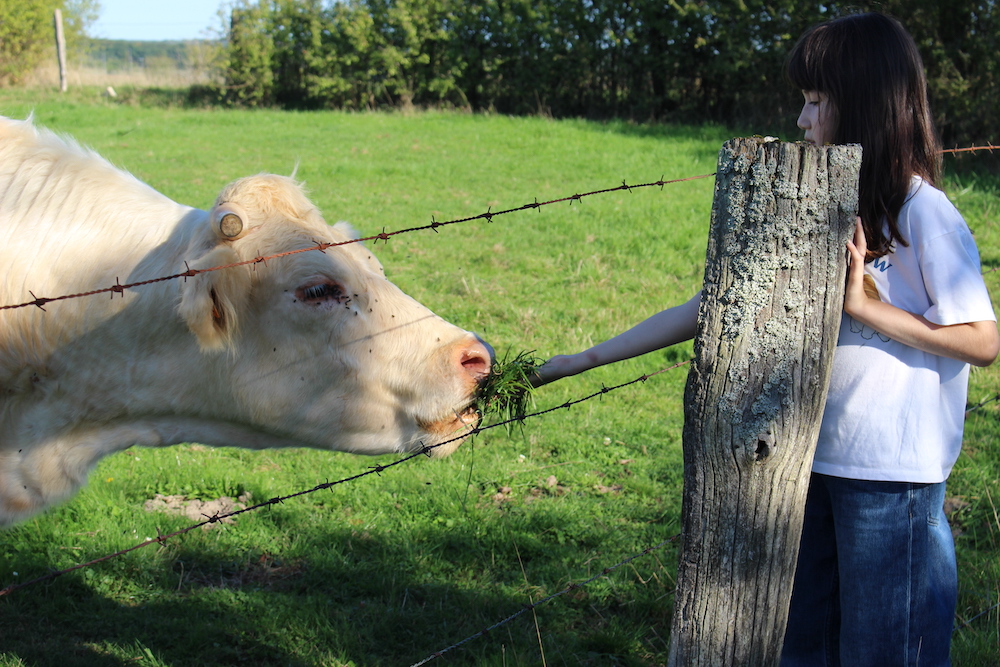 リシャーの実家はフランスのロレーヌ地方にあります。日本の田舎と違って、たくさんの家畜が放牧されています。ロレーヌ地方には特に白いシャロレー牛がよく見かけます。肉牛ですけれど、結構可愛いです。