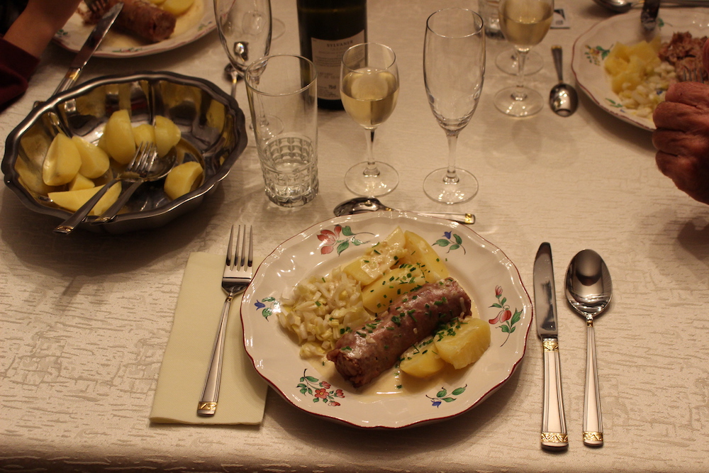 実家に帰ると懐かしい料理を色々食べる。いつも欠かせないのはアンドゥイエット (Andouillettes) だね。内臓の腸詰ソーセージで、付け合わせのマスタードソースとジャガイモとチコリーのサラダと一緒に食べると絶品だ。
