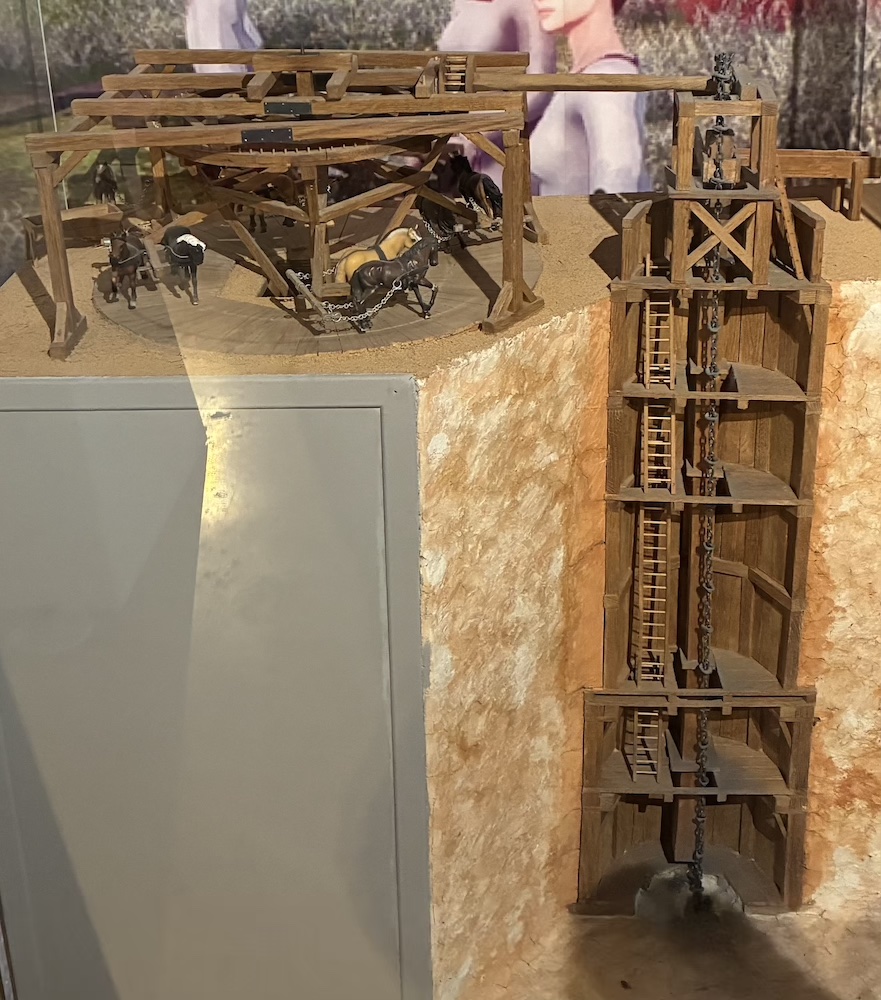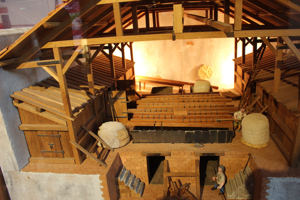地下の岩塩を採るために鉱山を掘るイメージが強いけれど、ロレーヌ地方では伝統的に水を利用して塩を地下から抽出してきた。昔のケルト人は塩の泉の水を素焼きの陶器の中に火にかけて、蒸発させて、塩の塊を作ってきた。やがてローマ帝国がこの地を収めて、技術が改良された。地下の岩塩層まで水を送り込んで、馬の動力を使ったバケツの組み上げ仕組みで高濃度の塩水 (鹹水、かんすい) を抽出することができた。